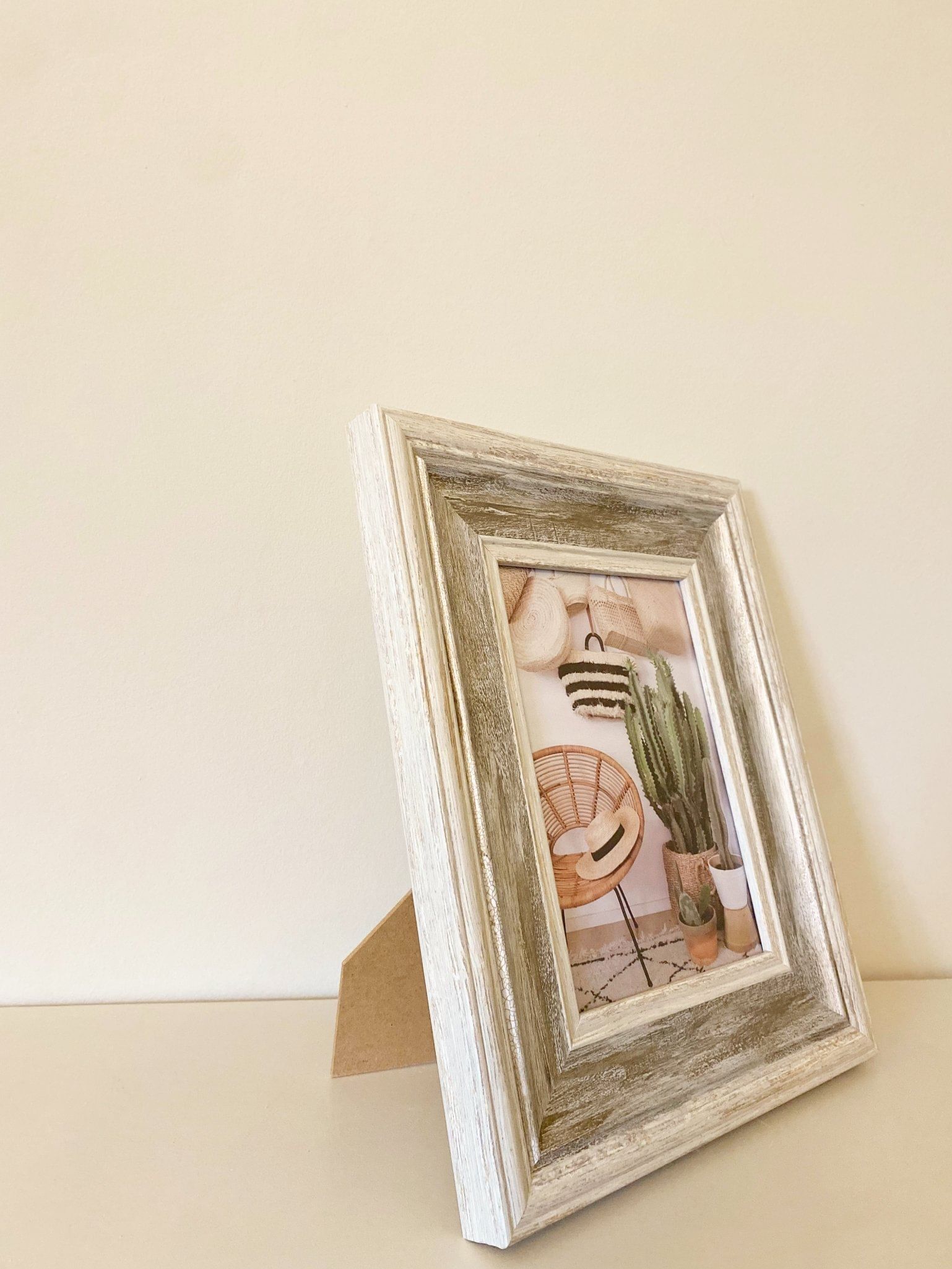 A charming decorative piece that holds one 5″ X 7″ photo. This shabby chic Antique White photo frame can be wall mounted or free-standing. Measurements: D1 x H28 x W23cm