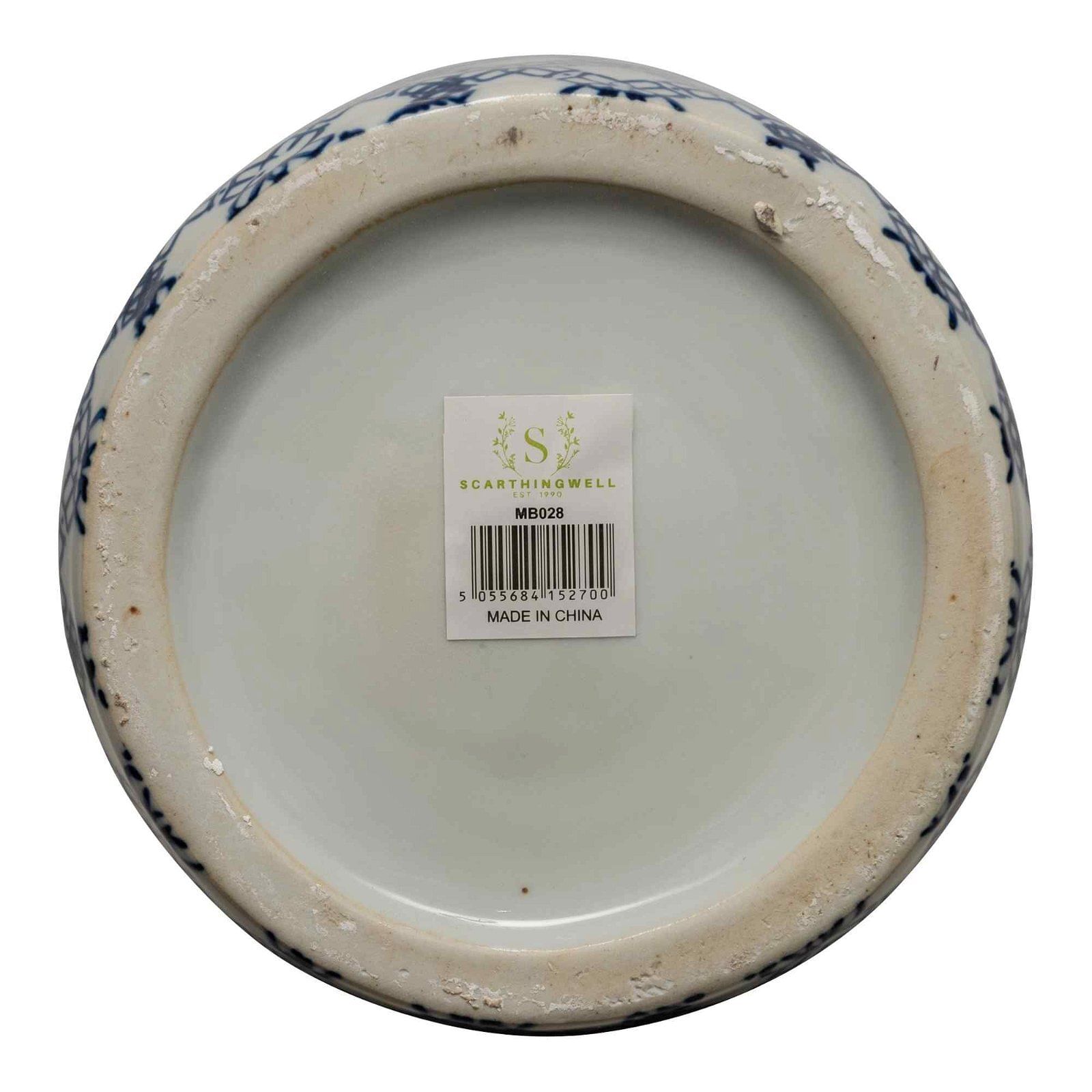 This hand painted blue and white umbrella stand with a floral Daisy chain like design would fit in well in a modern hallway and add that little touch of needed colour. The overall size of this umbrella stand is Dia20cm x H44.5cm with an opening in the top of 16cm. Overall measurements: D44.5 x H20 x W20cm