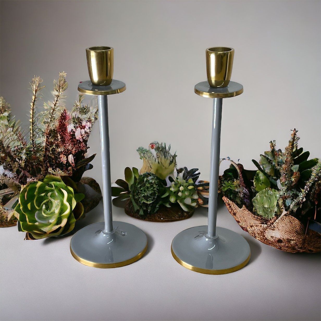 Glossy Grey Irina Candlestick, Set of 2, 26cm