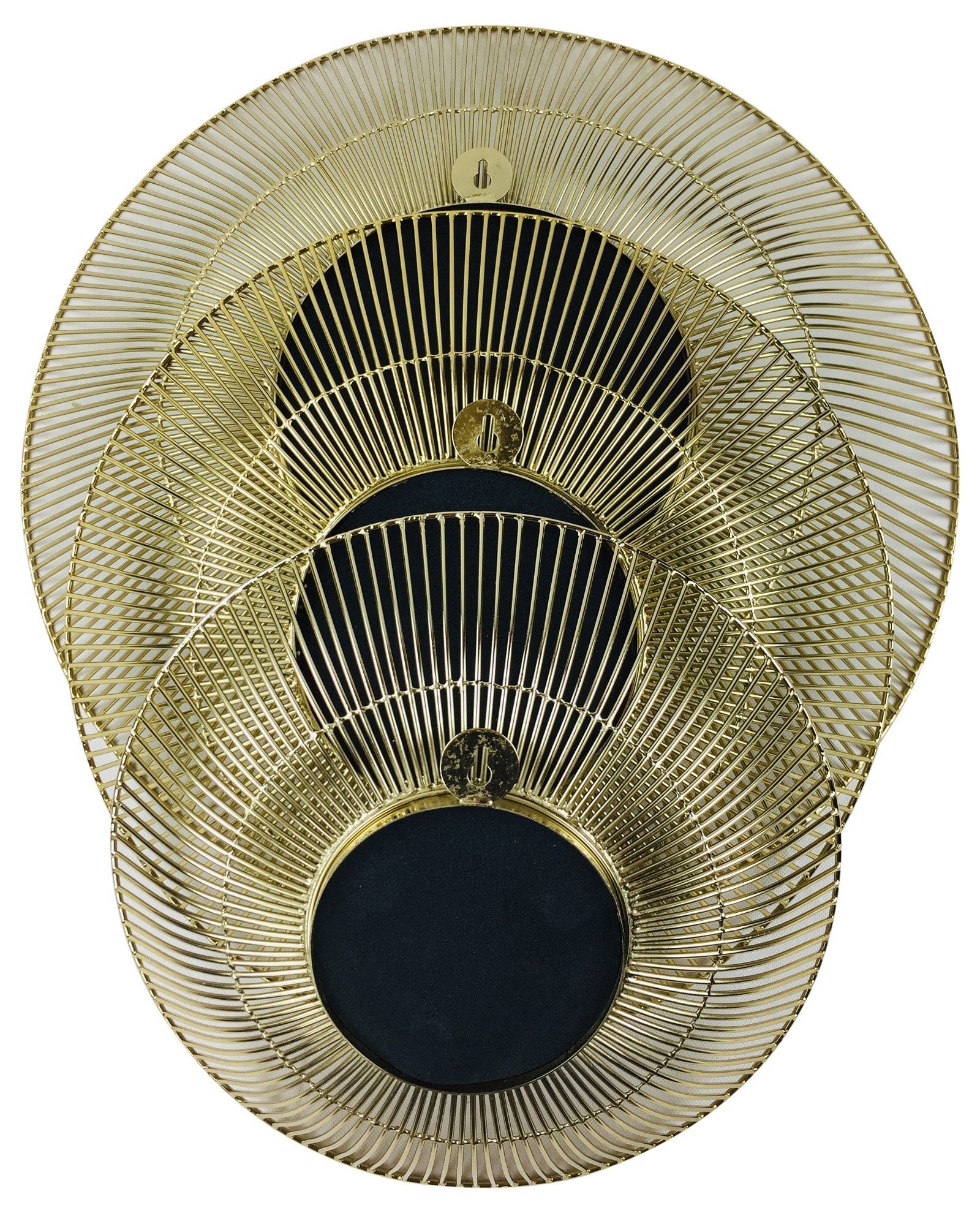 A set of three metal wire design mirrors with a gold painted finish. Each mirror is easily wall mountable via brackets on the back of each mirror. Large: 51x51x9cm. Medium: 41x41x7.5cm. Small: 33x33x7cm. Measurements: W51cm x D7cm x H51cm. SKU: MI0855