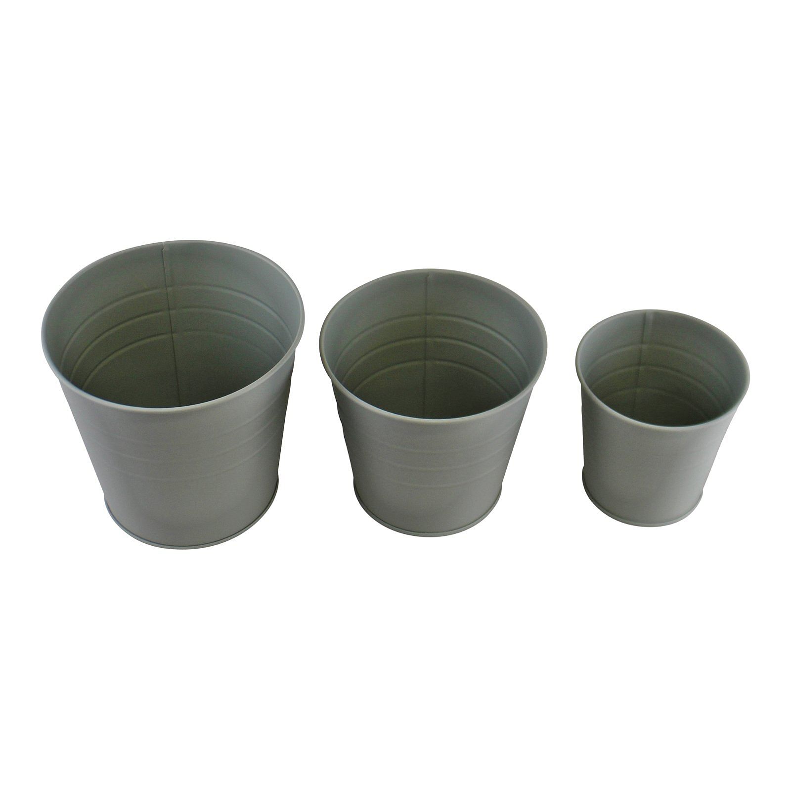 A set of 3 metal bucket style planters from our potting shed range. In a soft, sage green colour. Made of 100% Zinc. Size of each planter: Large 15.5×15.5×14.5cm. Medium 14x14x12.5cm. Small 11x11x10.5cm. Measurements: 15.5 x 14.5 x 15.5cm SKU: PS0086