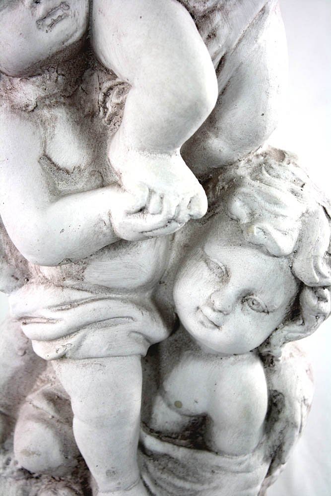 A stone effect statue of 3 cherubs holding up a beautiful bowl. Based on a classical style statue this reproduction will make an elegant addition to any garden. Can be used as a bird bath, feeder or jardiniere. It is made to resemble smooth or weathered stone or marble. Part of our stunning range of Polyresin stone-effect garden ornaments. Built to last and extremely durable. Measurements: 26.7 x 26.7 x 63.5cm